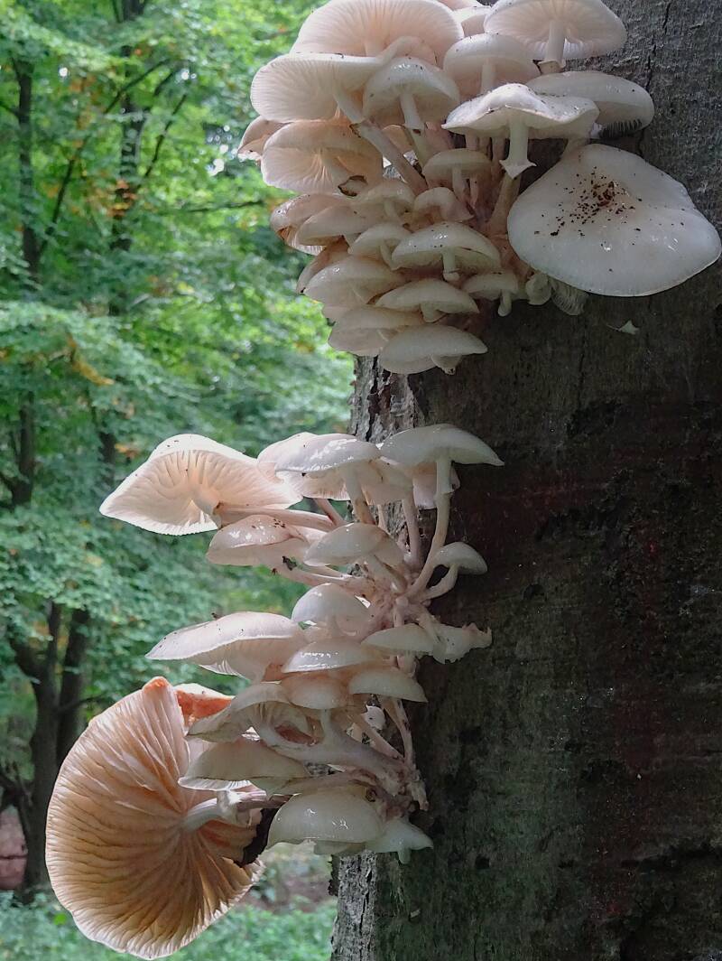Wie in de herfst een beukenbos verkent, heeft een goede kans om deze zwammen te ontdekken. Vooral op vochtige dagen lijken hun witte hoeden nog meer te glanzen in het zonlicht dat door het bladerdak sijpelt. Ze groeien vaak in kleine groepjes, hoog op de stam van een beuk, en als het meezit, kun je ze van onderen bewonderen. Door hun bijna doorschijnende hoeden lijken ze dan een zacht licht uit te stralen.