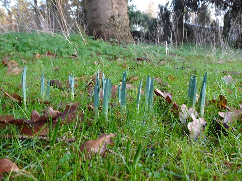 De laatste bloembollen zijn geplant, klaar om in het voorjaar te bloeien — tenzij de reeën ze opnieuw ontdekken zodra ze boven komen, zoals in voorgaande jaren gebeurde (zie foto 2), toen ze bijna alle tulpen hadden opgegeten. Daarom zijn dit jaar alleen narcissen gepoot, want die laten ze meestal altijd staan.